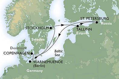 Cruise to the Norwegian fjords and the capitals of northern Europe including: Copenhagen, Stockholm, Talin and St Petersburg.
